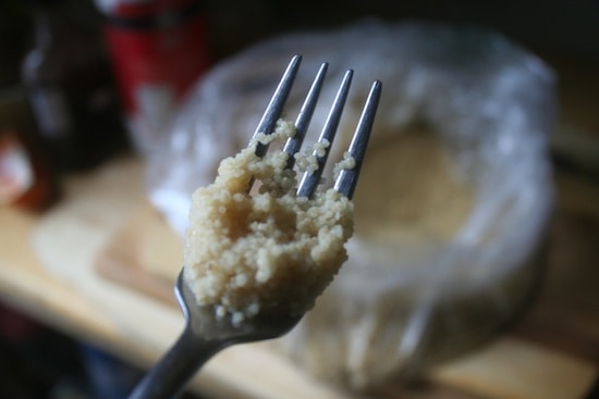 I’m not going to disagree with you – steaming couscous is actually a common and accepted practice – but I am going to say that lots of people don’t have the equipment necessary to steam something as small as couscous. Cheesecloth and colander, sieve… the purpose of the boot camp is to make everything as simplified as possible for a person with even the barest of bones in kitchen equipment, or only encourage them to buy a few inexpensive items.