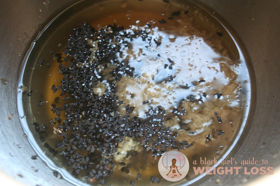 Pour two tablespoons of oil into 6 tablespoons of the apple cider vinegar. Add two tablespoons of honey, as well. That might seem excessive, but considering the amount of ginger we’re putting in here, you might realize that you need it. Besides – you can simply dilute it by adding more vinegar if it becomes too much for you, or you can feel free to skip the honey altogether.